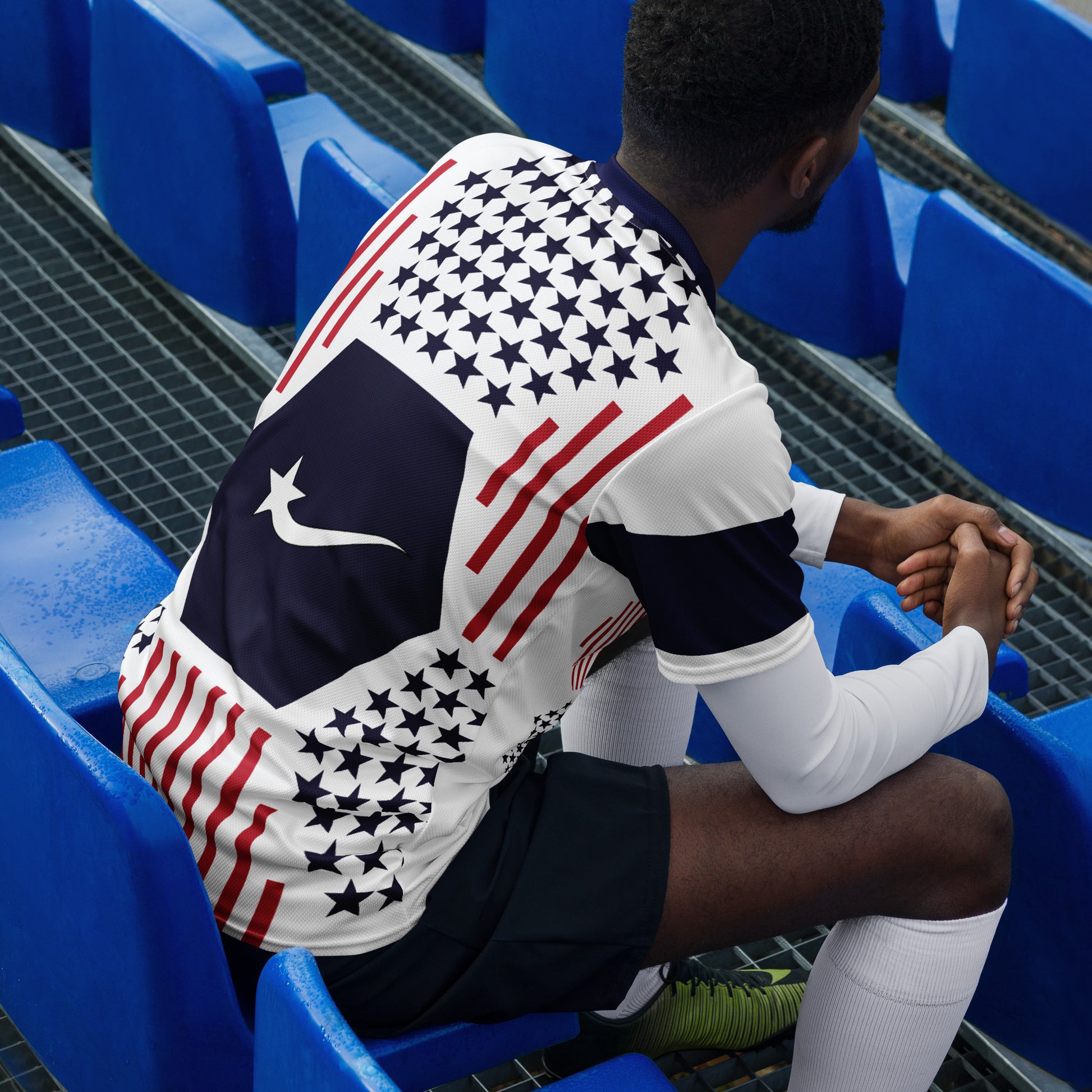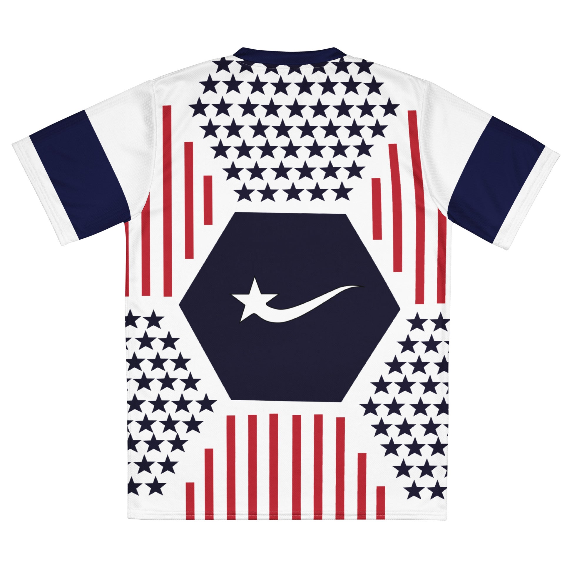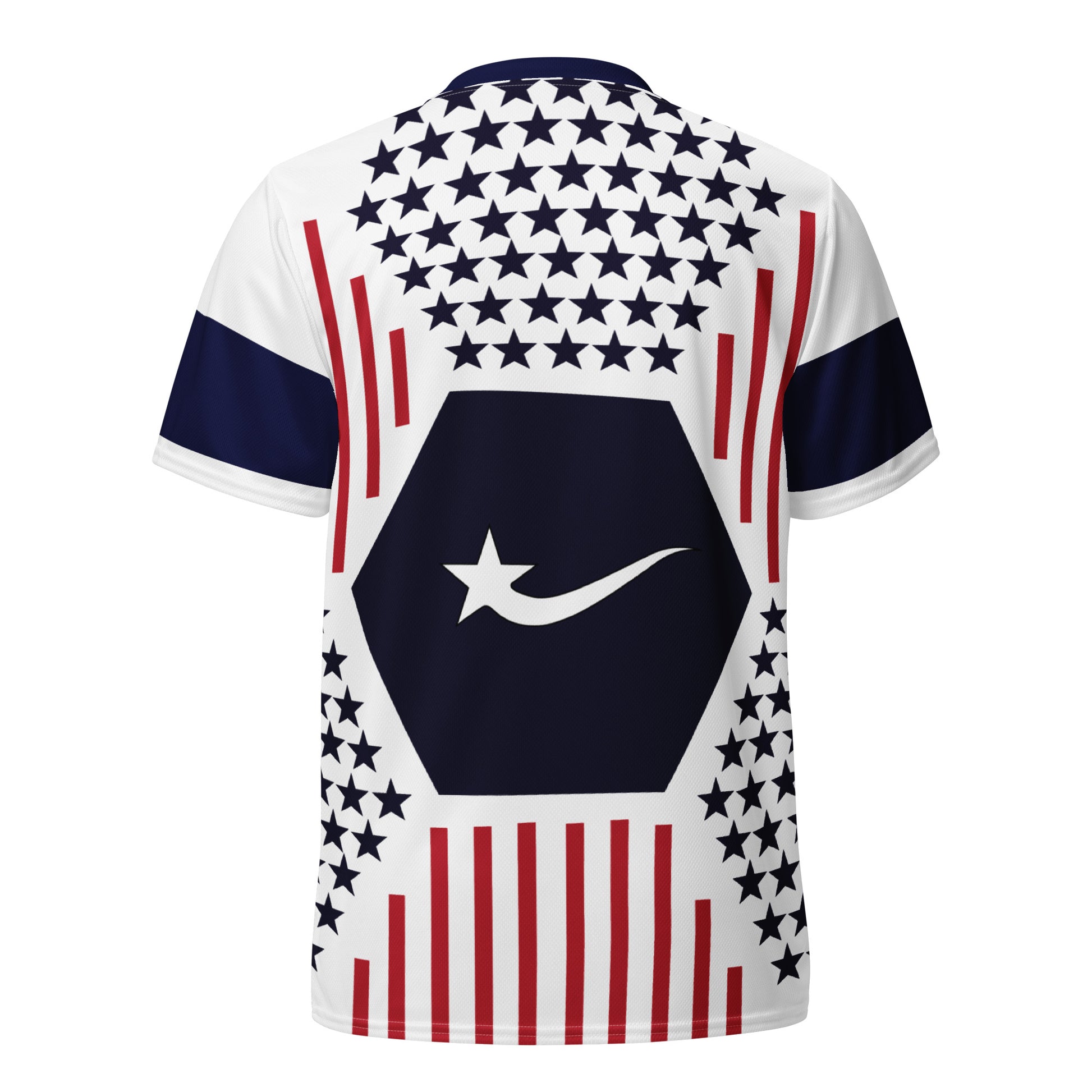 Looking for the perfect sports jersey? We have you covered—made of 100% recycled polyester fabric, this shirt is breathable, moisture-wicking, and has a double-layered v-neck collar that creates a premium look.